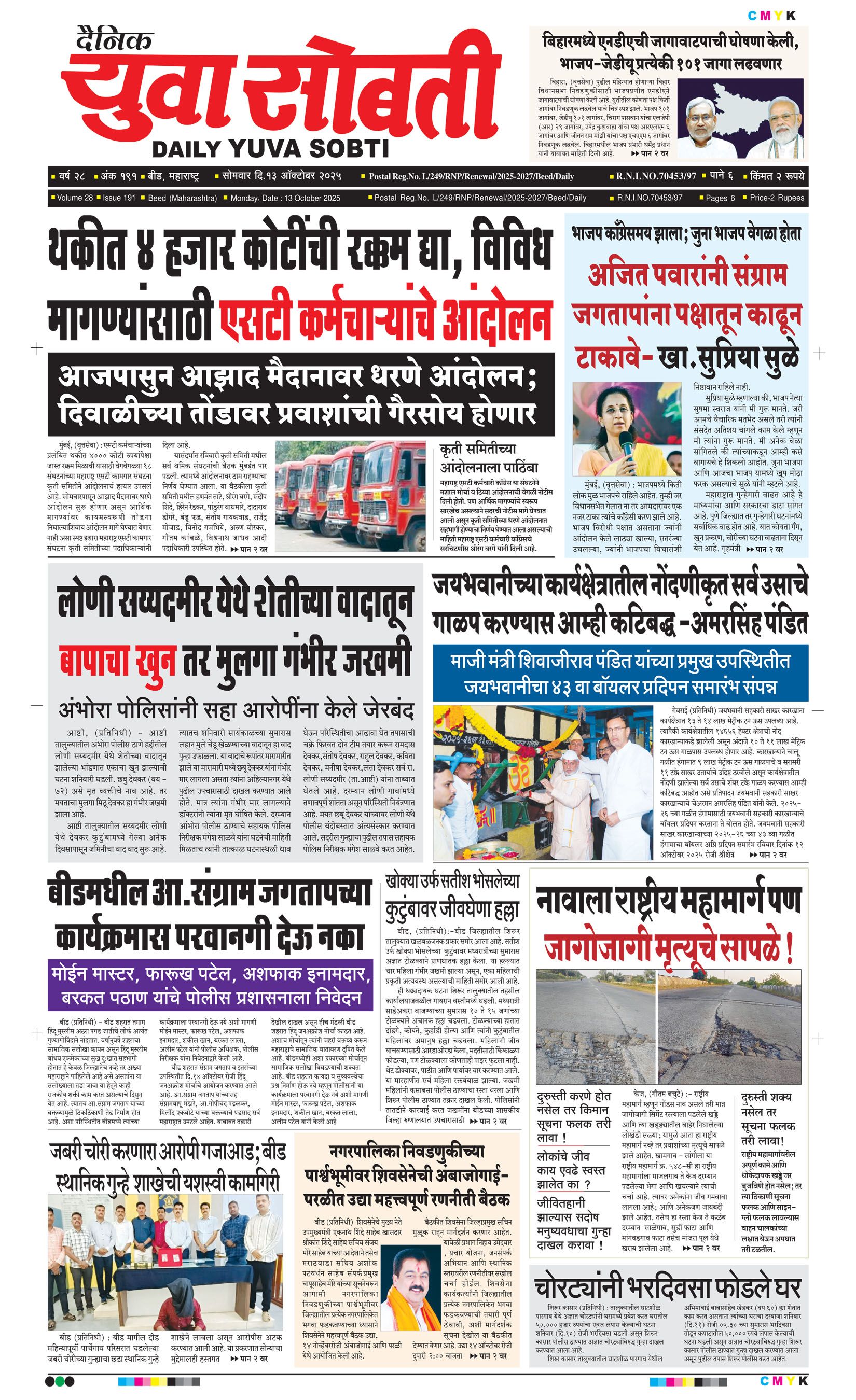 Yuvasobti Beed Marathi News Paper | Yuva sobti |Yuva Sobti News News paper Page 1 | Beed Newspaper